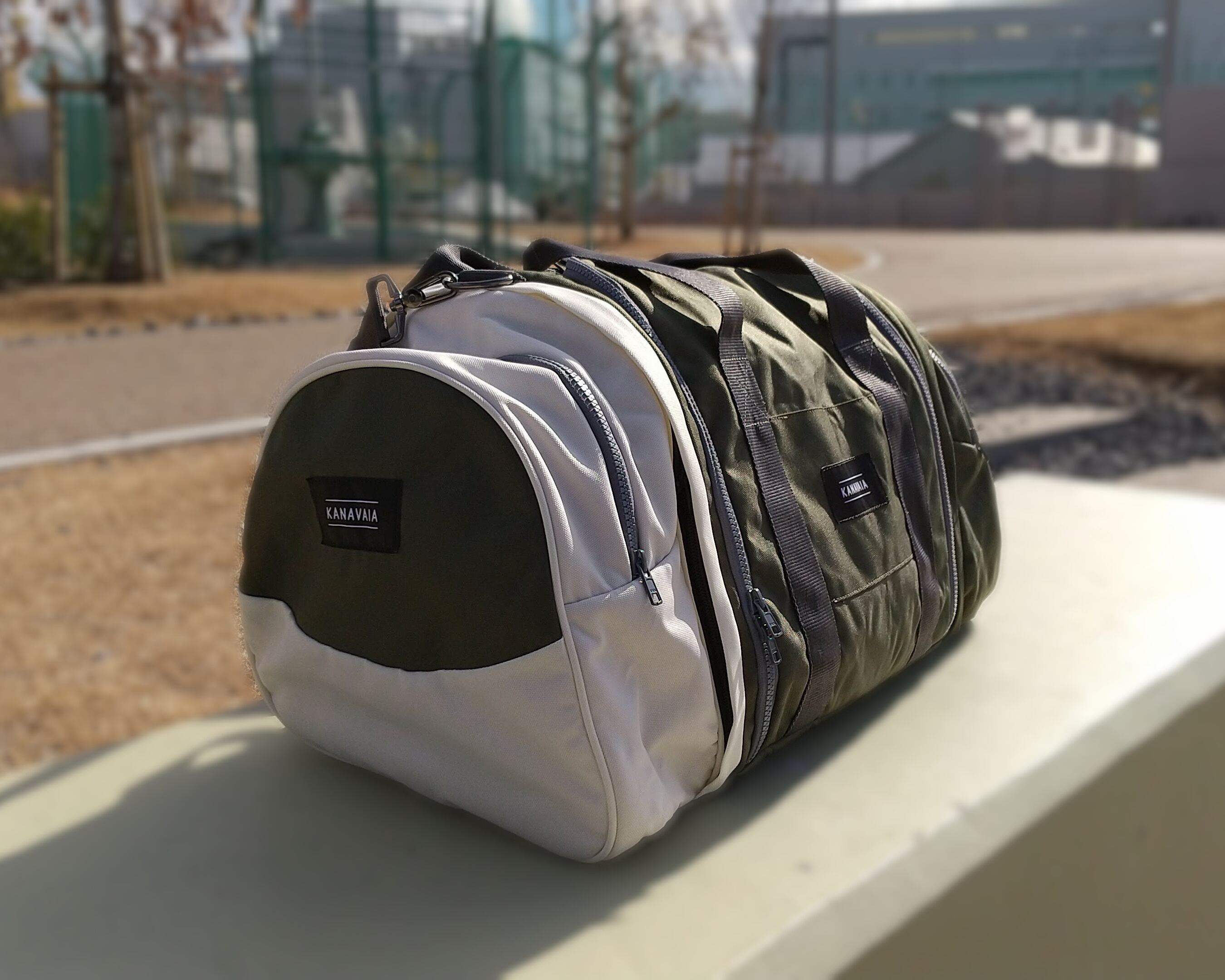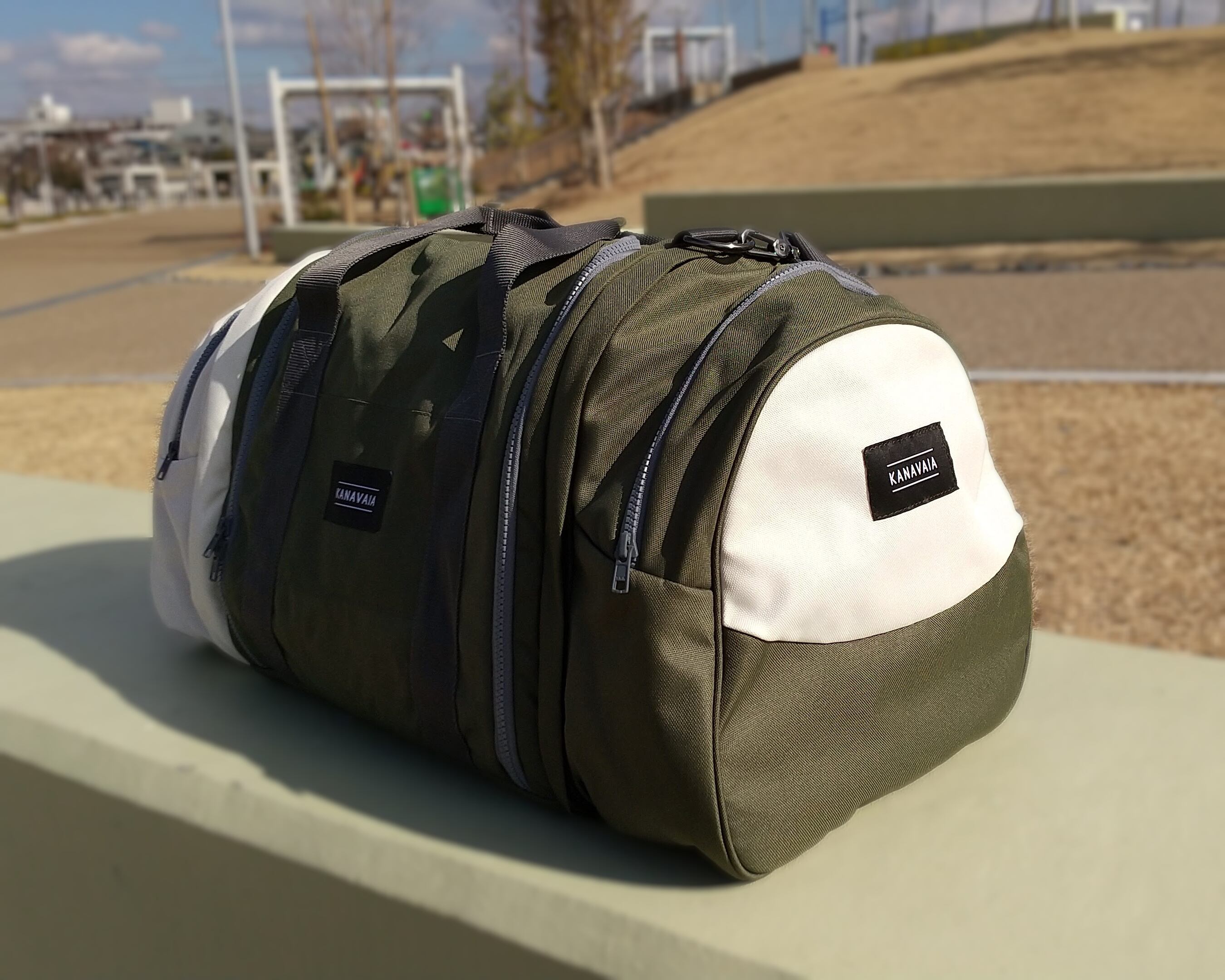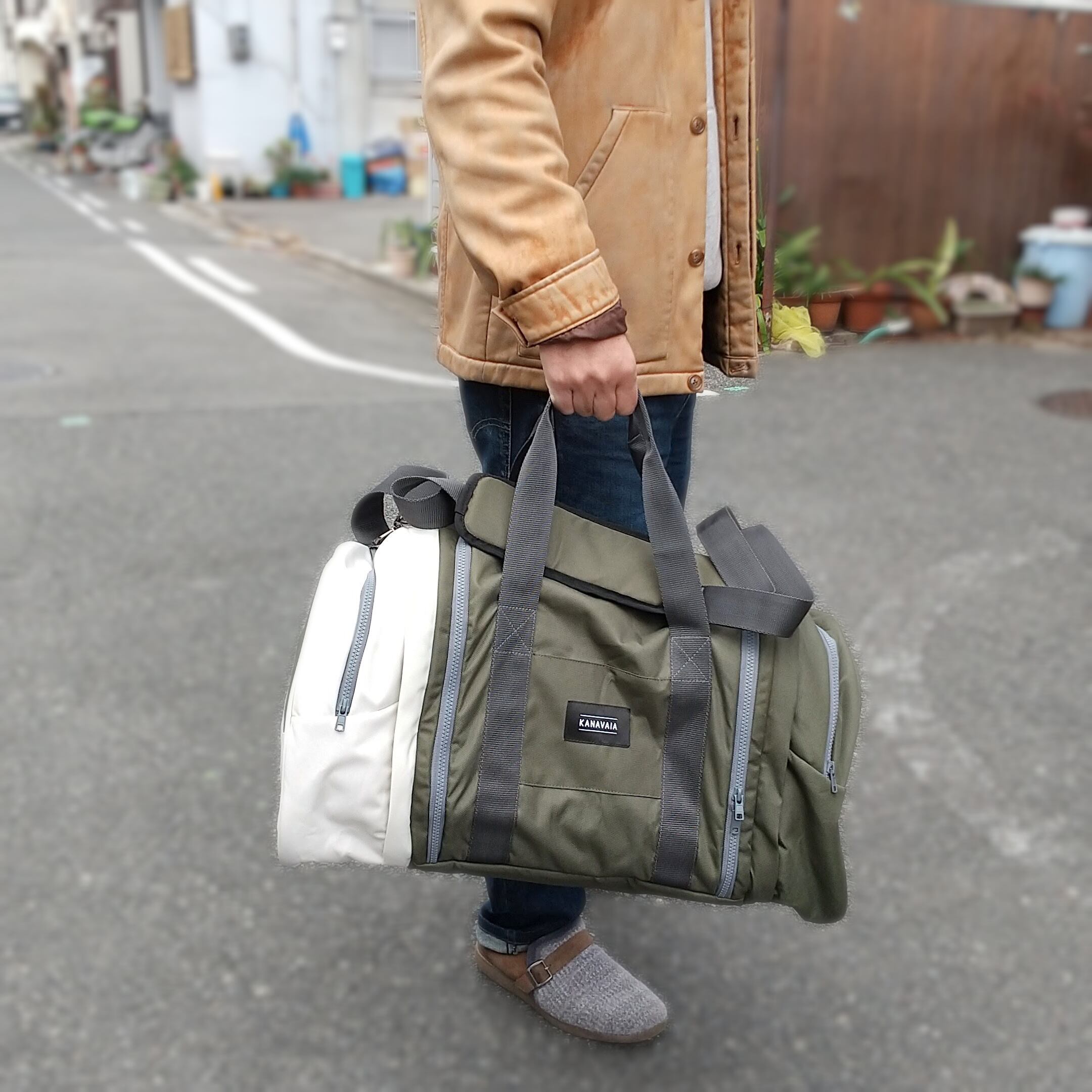 3つのバッグに分解できる進化型ボストンバッグ アーミーグリーン/クリーム kanavaia