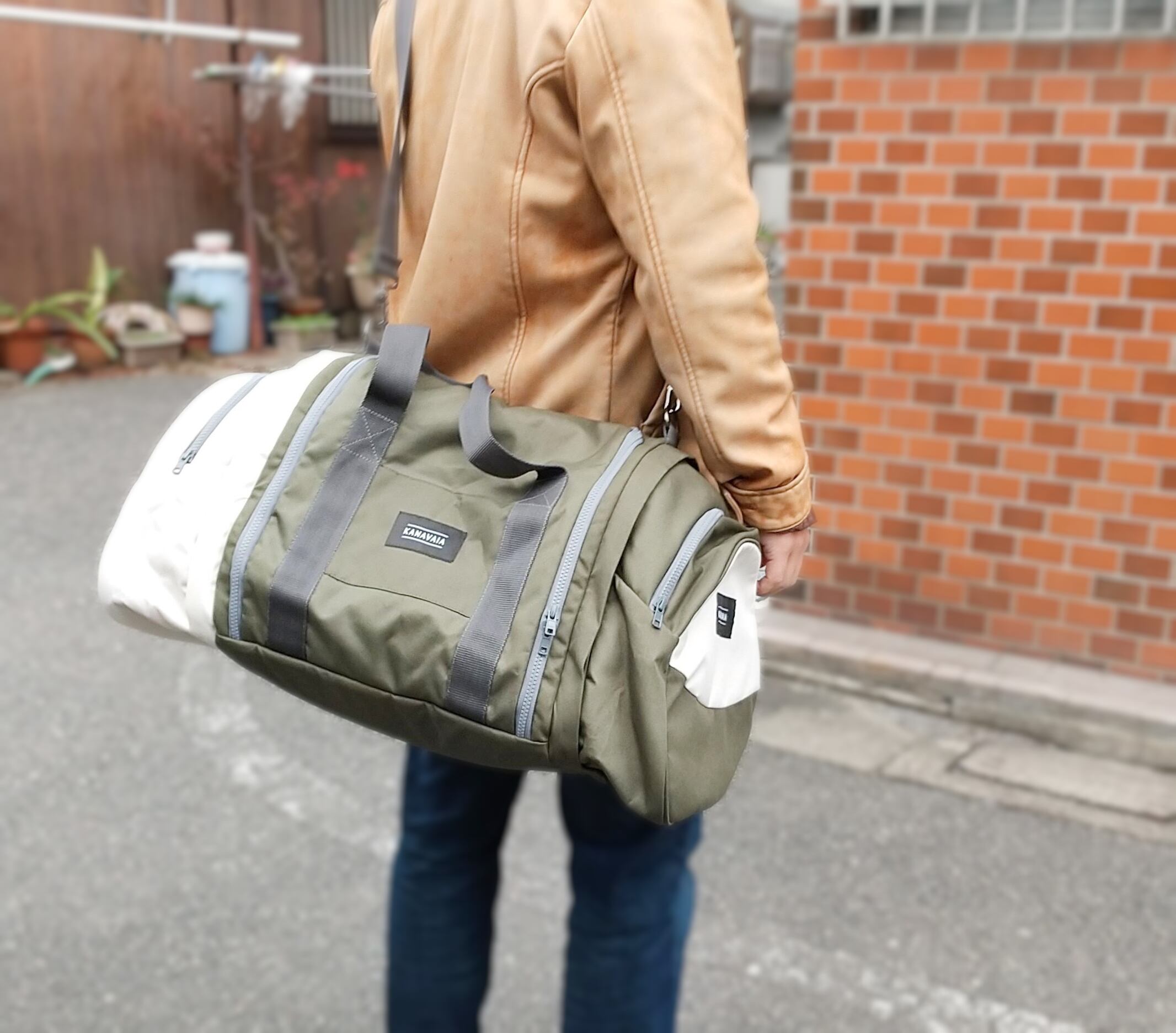 バッグの両端がジッパーにより着脱可能になっており、片方がリュック、もう片方が斜め掛けショルダーバッグ、そしてメイン収納部はボストンバッグとして使えるのが最大の特徴です。例えば、旅行に出掛けるとき何種類かのバッグを持ち運びしている人をよく見かけますが、リュックと斜め掛けショルダーバッグの機能を併せ持つこのバッグ1つあれば、事足りるので荷物がよりコンパクトになります。