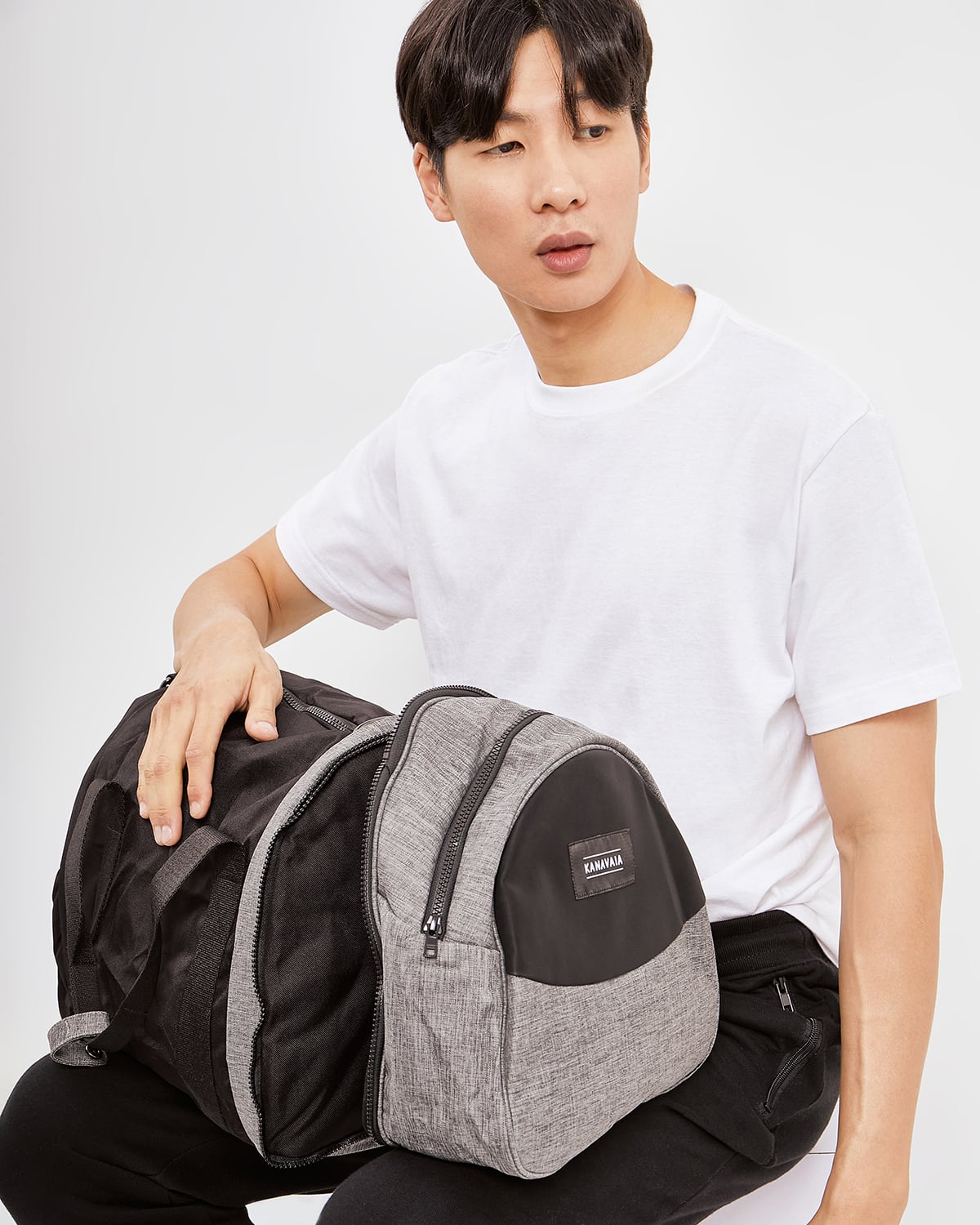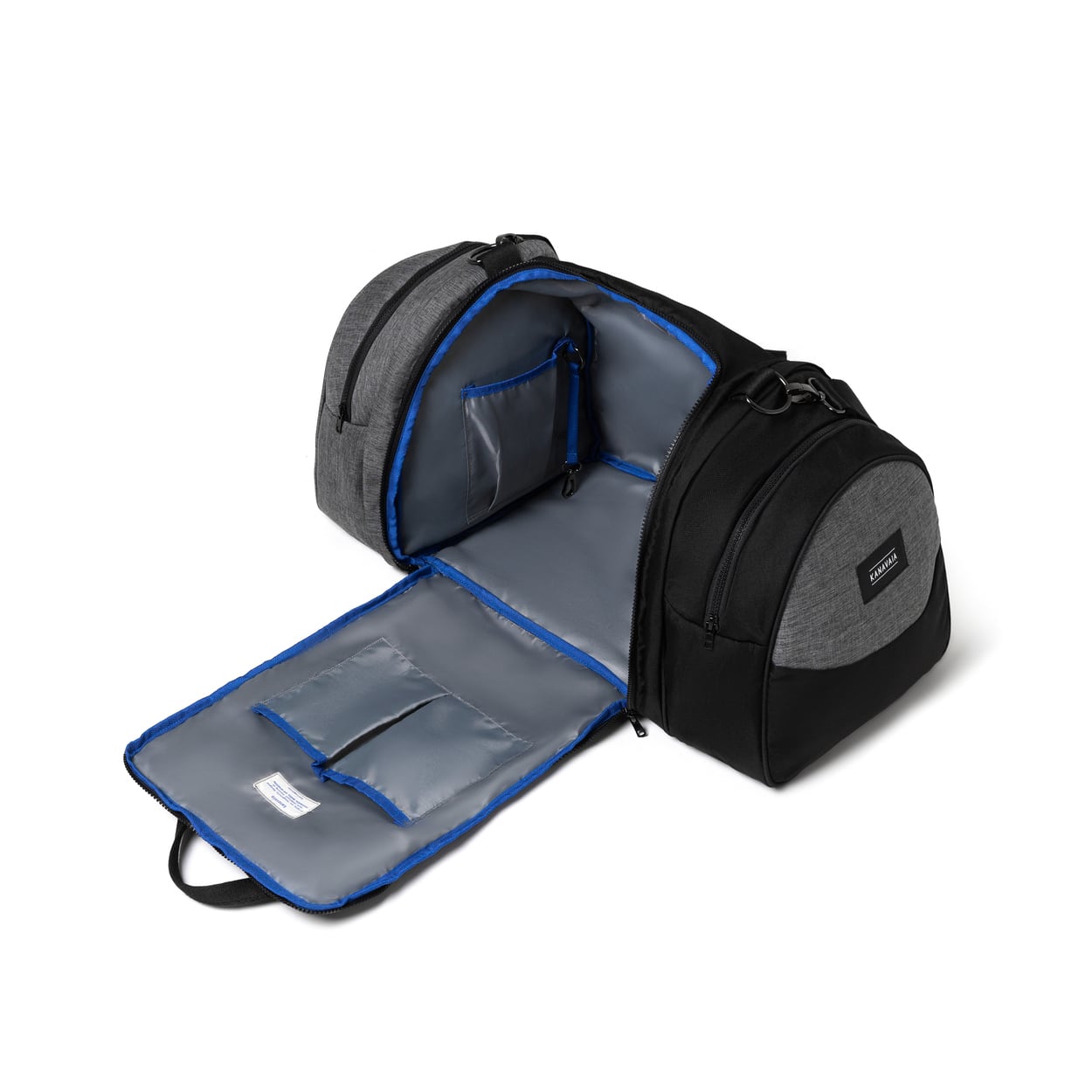 3つのバッグに分解できる進化型ボストンバッグ ブラック/クロスハッチグレー kanavaia